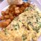 Wild caught, tasso ham, Logan's andouille, tomatoes, scallions in a Louisiana-style sauce, cheesy grits and crispy onion straws.
