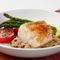Wild caught Alaskan cod, over quinoa and pomegranate, grilled tomatoes, asparagus, lemon garlic sauce