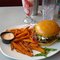 Local lamb and merguez sausage burger, tahini harissa yogurt, feta, arugula, caramelized onions and sweet potato fries.