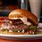 Bleu cheese crumbles, nitrate-free bacon, onion straws, A-1 and honey mustard.