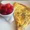 Eggbeaters, low-fat cheddar, zucchini, cremini mushrooms, tomatoes, fresh strawberries and fruit with whole wheat toast.