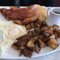 Silver dollar pancakes (instead of biscuit), farm fresh Amish eggs any style and two choices of meat.