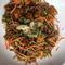 Sambal honey glazed protein, organic tamari soy, basil, zucchini, carrots, kale, roasted organic corn, scallions, radish, peach salsa